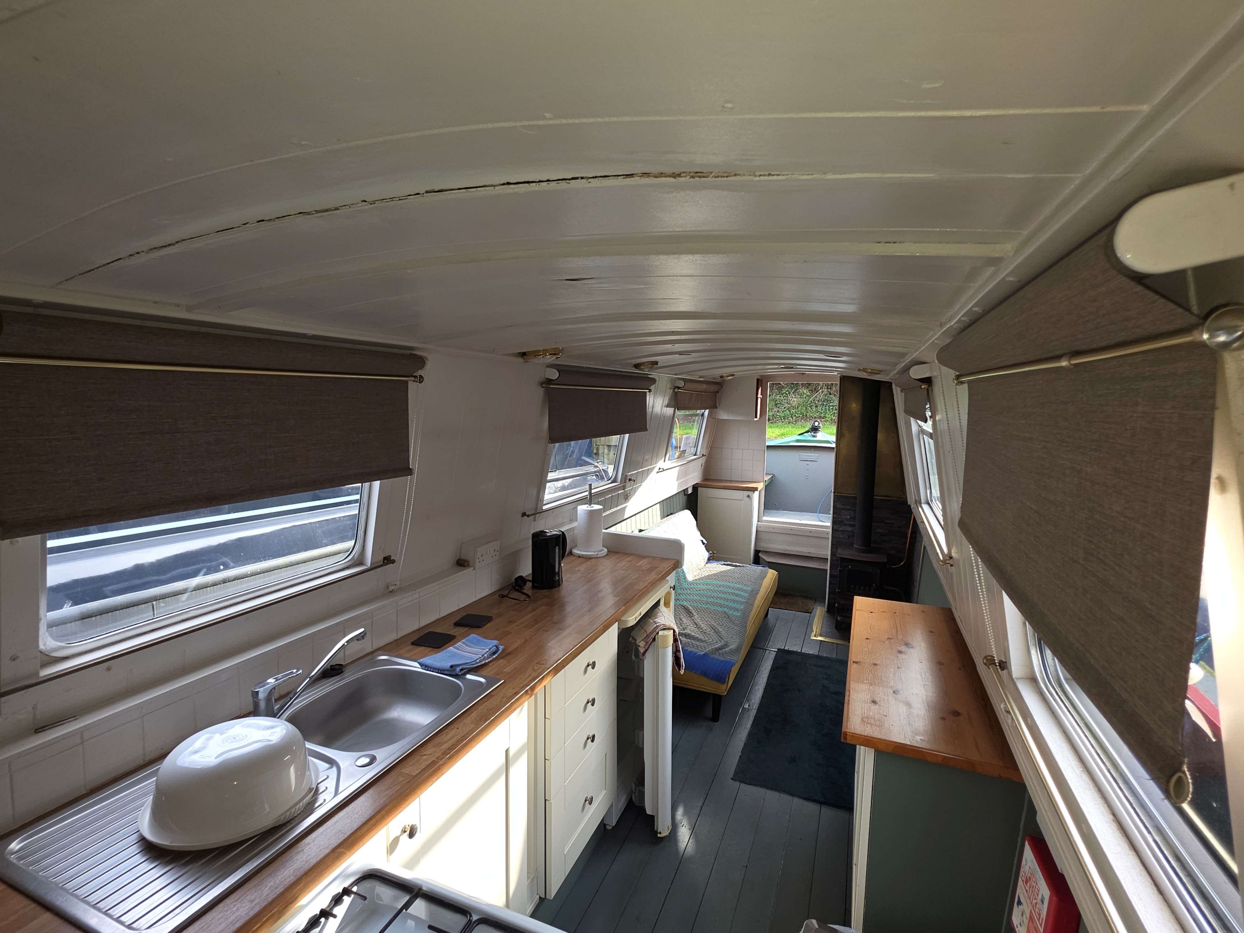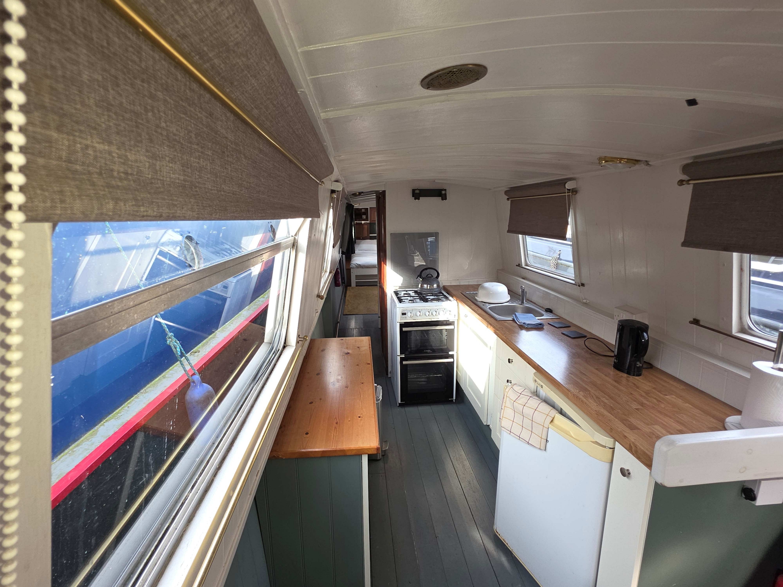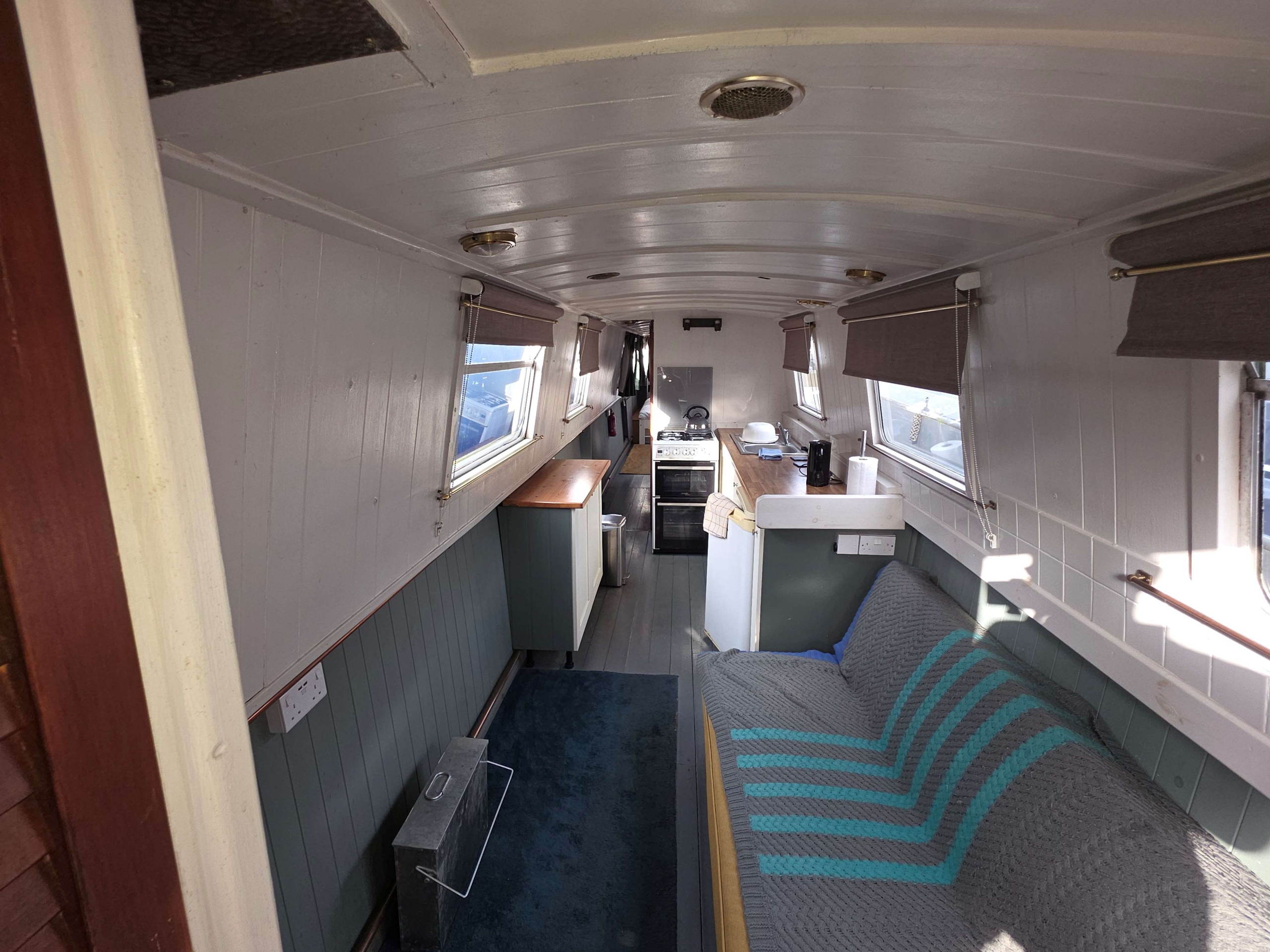 Benbecca is a 55ft Narrowboat built in 1981 by Hancock and Lane and offered for sale at £42,950. Her accommodation comprises… Stepping on board from the bow with Gas locker to the fore with space for two 13kg bottles, down steps with gas boiler to starboard (not in use), airing cupboard with Calorifier in and storage above, into the saloon with Stove with back boiler heating two radiators in the rear of the boat, Sofa bed opposite, through to galley with stainless steel sink with drainer, under counter fridge and a free standing cooker, through corridor with bathroom off with Shower over hip bath, pump out toilet and vanity basin, through corridor to bedroom with two radiators powered from the front stove, Hatch to port and a 4ft 6” wide bed, the bedroom measures 17ft so has plenty of scope for storage etc, the boat engine room is accessed from the stern of the boat and is a traditional stern with the engine under and some bulkhead storage. The boat benefits from having the roof repainted in 2024, and other upgrades in 2023 including a new calorifier , a new inverter and new engine mounts fitted. Contact Marc on 07552824347 for further details and viewing.