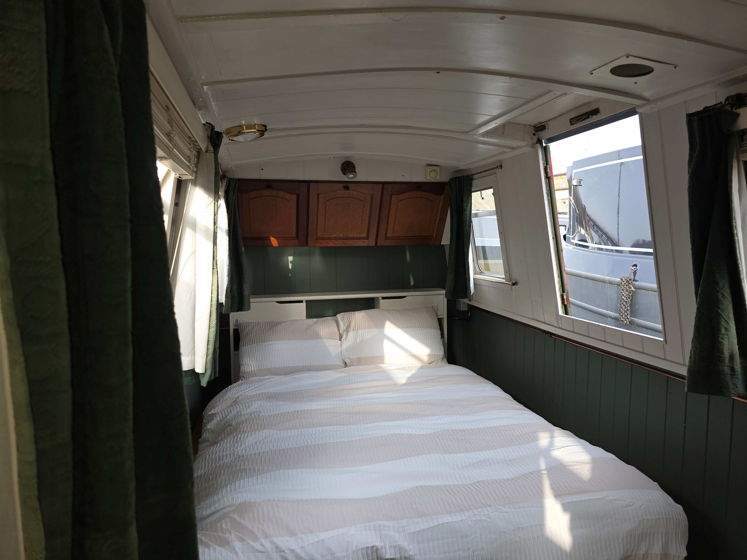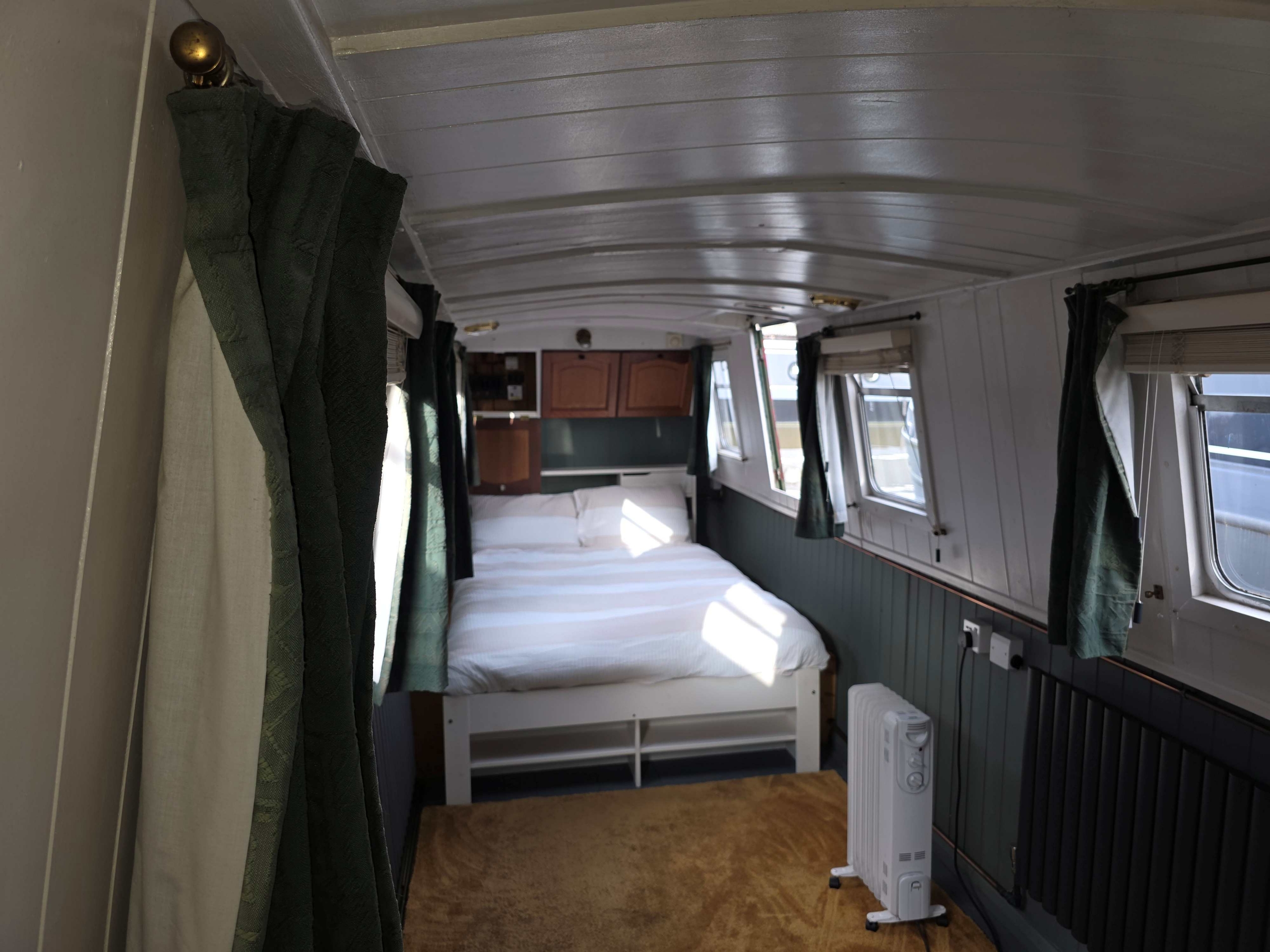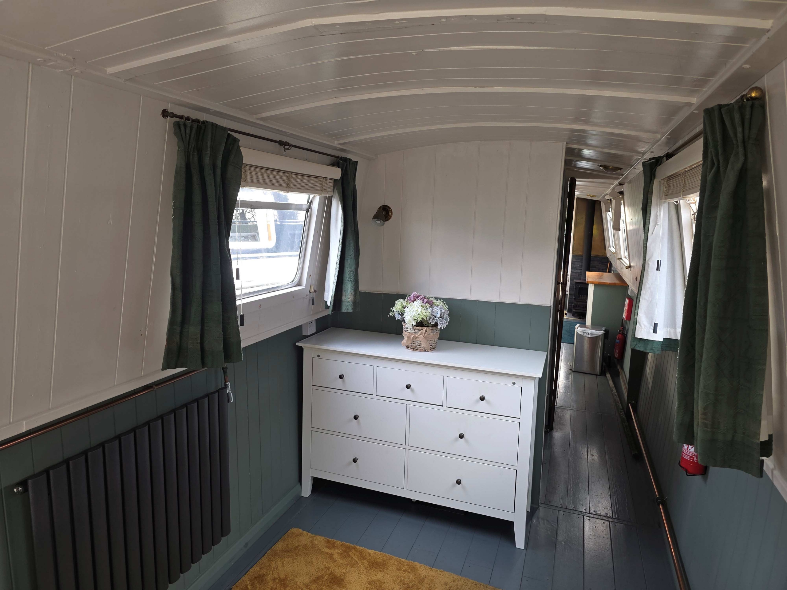 Benbecca is a 55ft Narrowboat built in 1981 by Hancock and Lane and offered for sale at £42,950. Her accommodation comprises… Stepping on board from the bow with Gas locker to the fore with space for two 13kg bottles, down steps with gas boiler to starboard (not in use), airing cupboard with Calorifier in and storage above, into the saloon with Stove with back boiler heating two radiators in the rear of the boat, Sofa bed opposite, through to galley with stainless steel sink with drainer, under counter fridge and a free standing cooker, through corridor with bathroom off with Shower over hip bath, pump out toilet and vanity basin, through corridor to bedroom with two radiators powered from the front stove, Hatch to port and a 4ft 6” wide bed, the bedroom measures 17ft so has plenty of scope for storage etc, the boat engine room is accessed from the stern of the boat and is a traditional stern with the engine under and some bulkhead storage. The boat benefits from having the roof repainted in 2024, and other upgrades in 2023 including a new calorifier , a new inverter and new engine mounts fitted. Contact Marc on 07552824347 for further details and viewing.